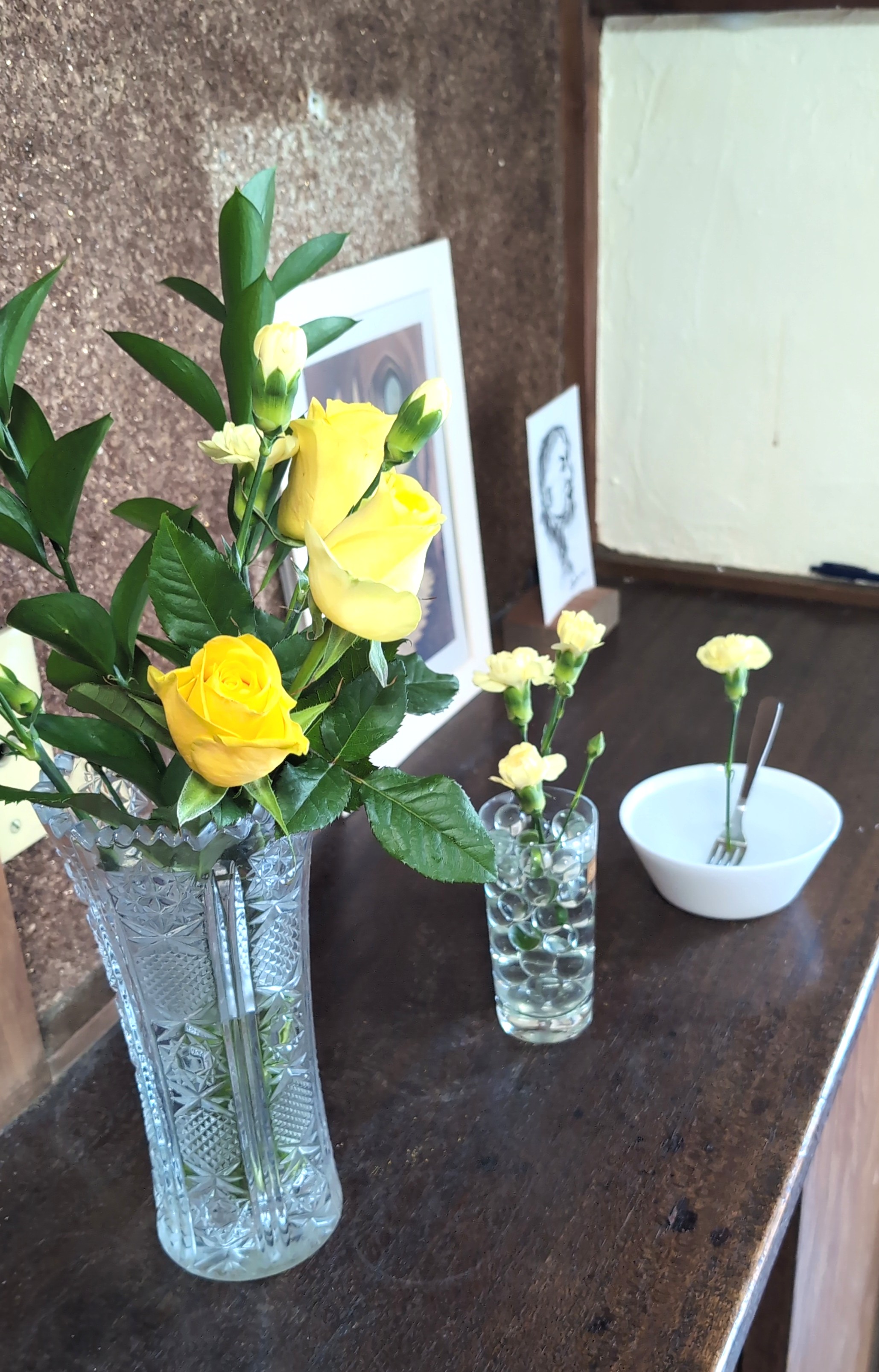 しかし、飾り方は自己流で、家にある花瓶に生けているだけ。