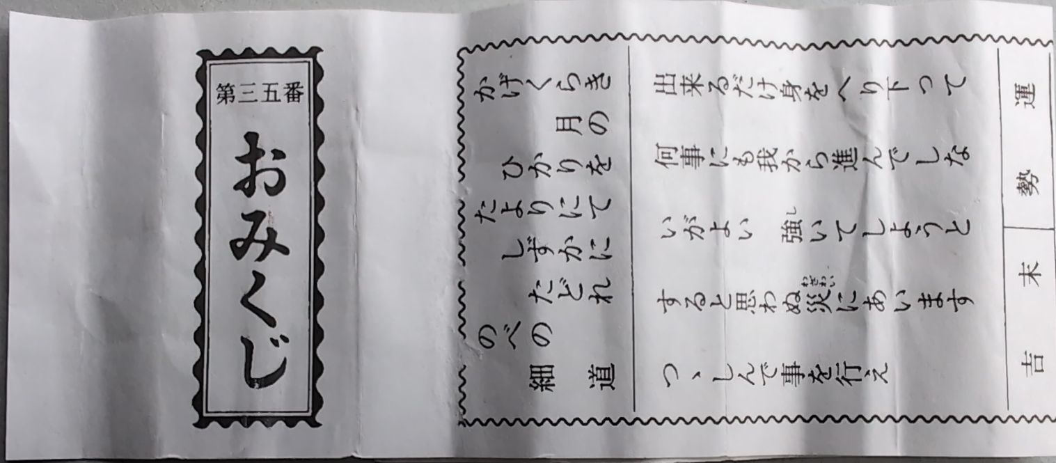 帰りに、「一年安鯛みくじ」をひいて、この一年を占った。