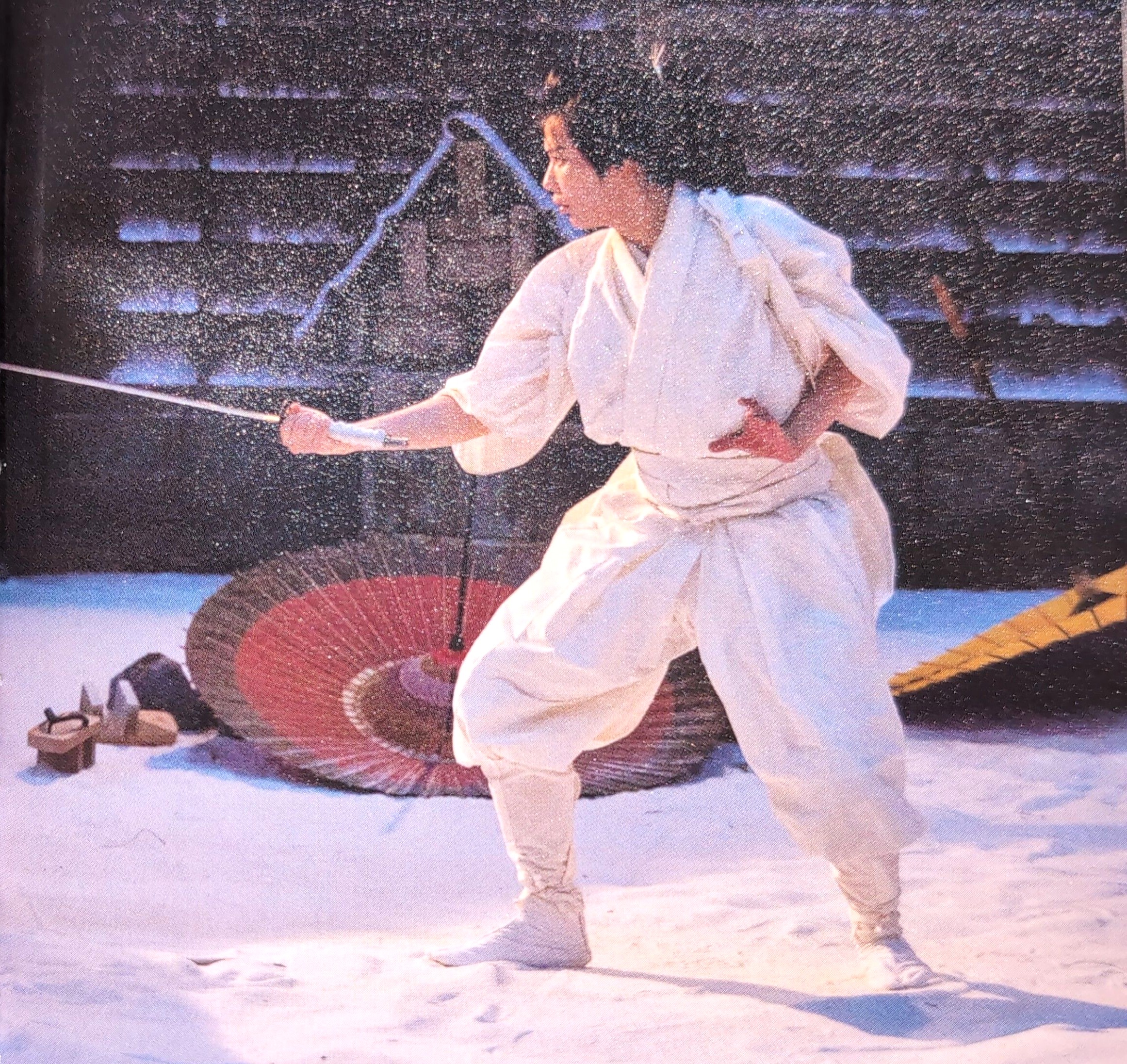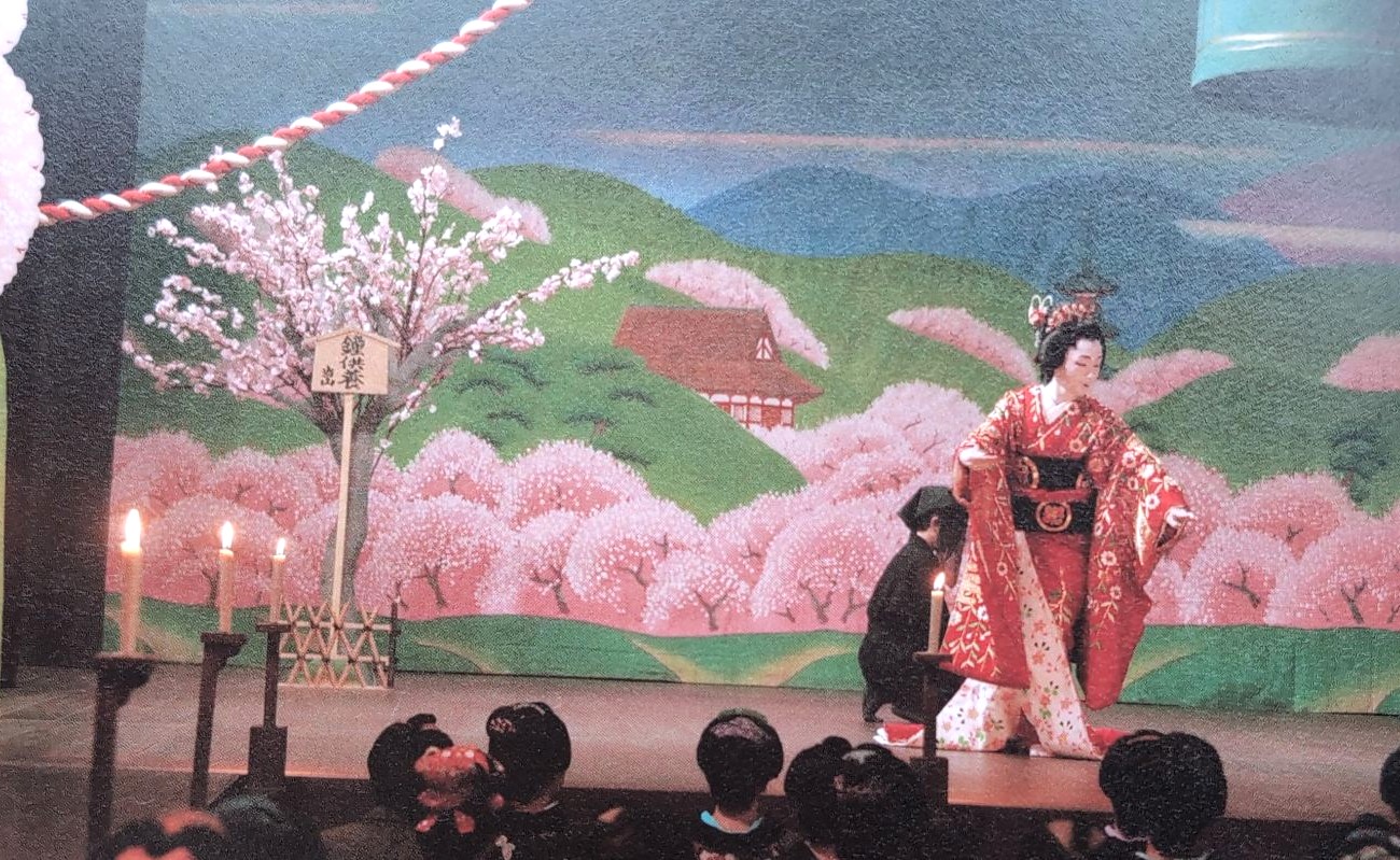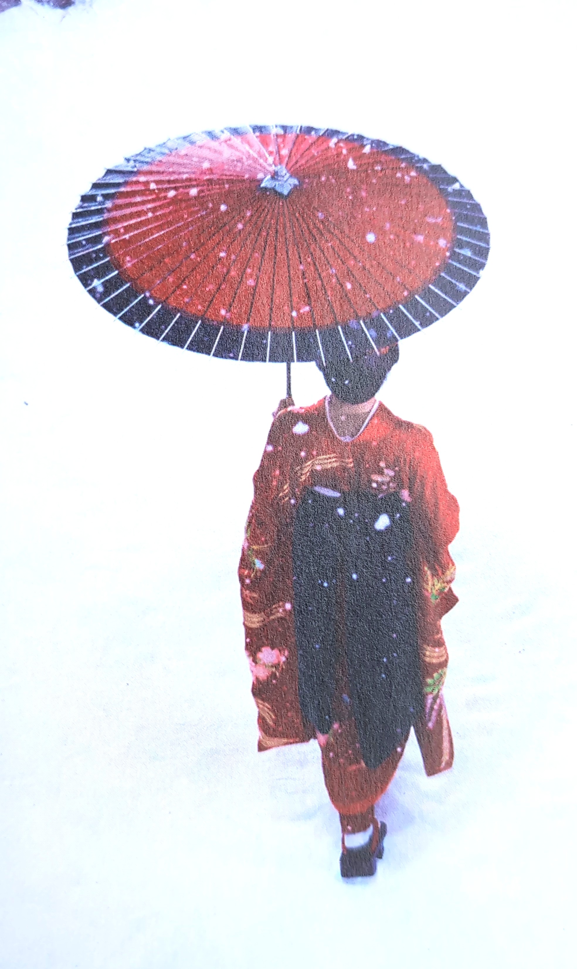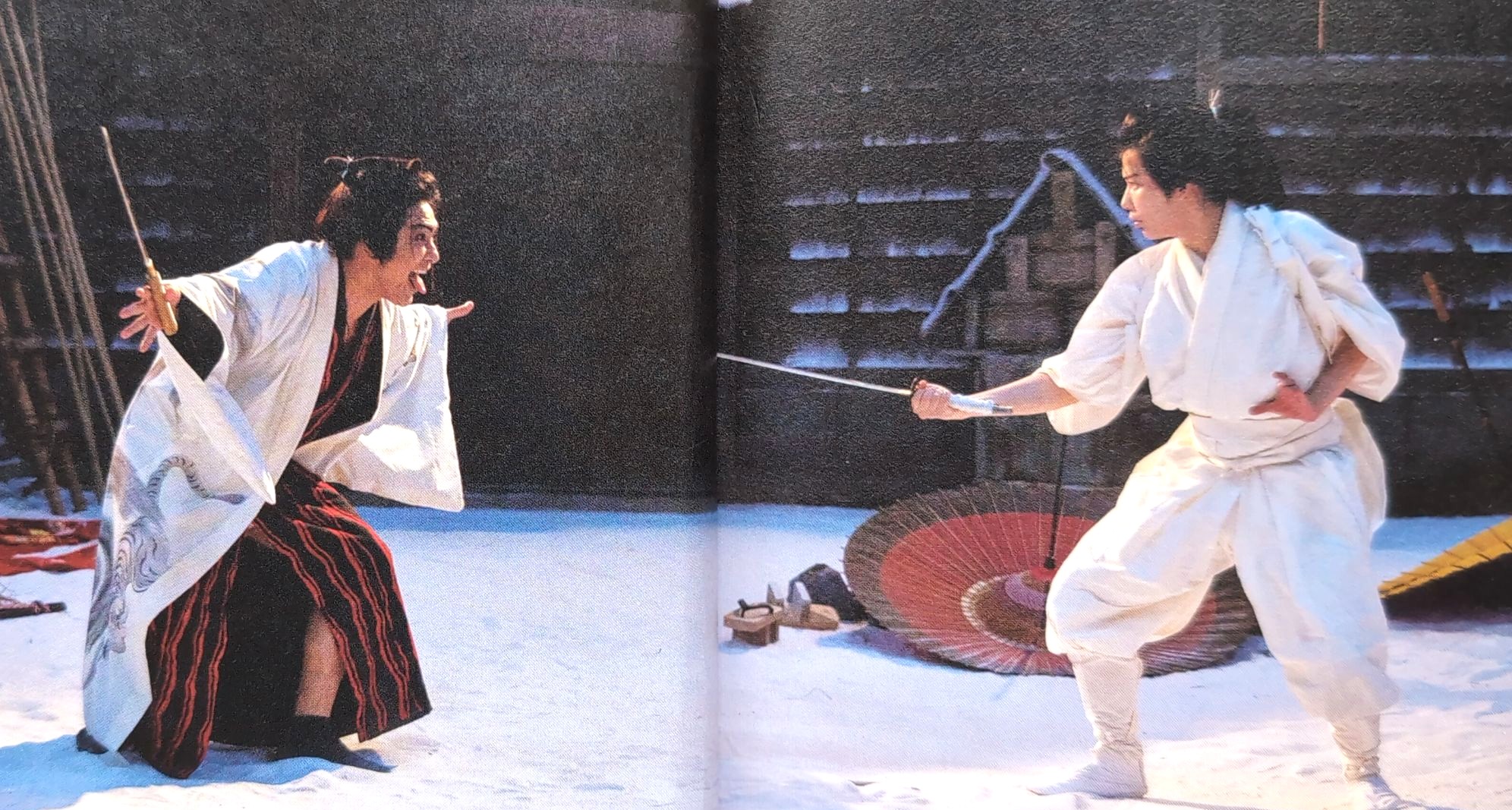 雪の中、赤い着物姿の女形で現れる。