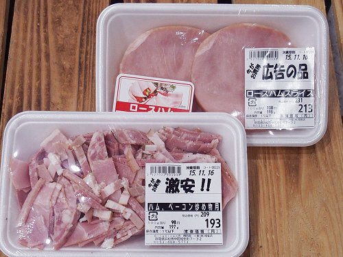 おはようございます!舞阪お買い得情報をお届けしていますスーパー生鮮市場ビアンカンの精肉です。今日のオススメは広告にも掲載いたしましたロースハムスライス、朝食にお子さんの勉強の夜食にとご活用ください。ハム・ベーコン炒め物用も激安!!でオススメしています。