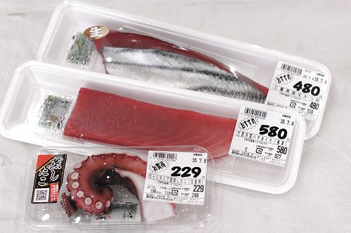 中は大西洋産のバチマグロ、下はお馴染みモーリタニアの蒸しダコです。